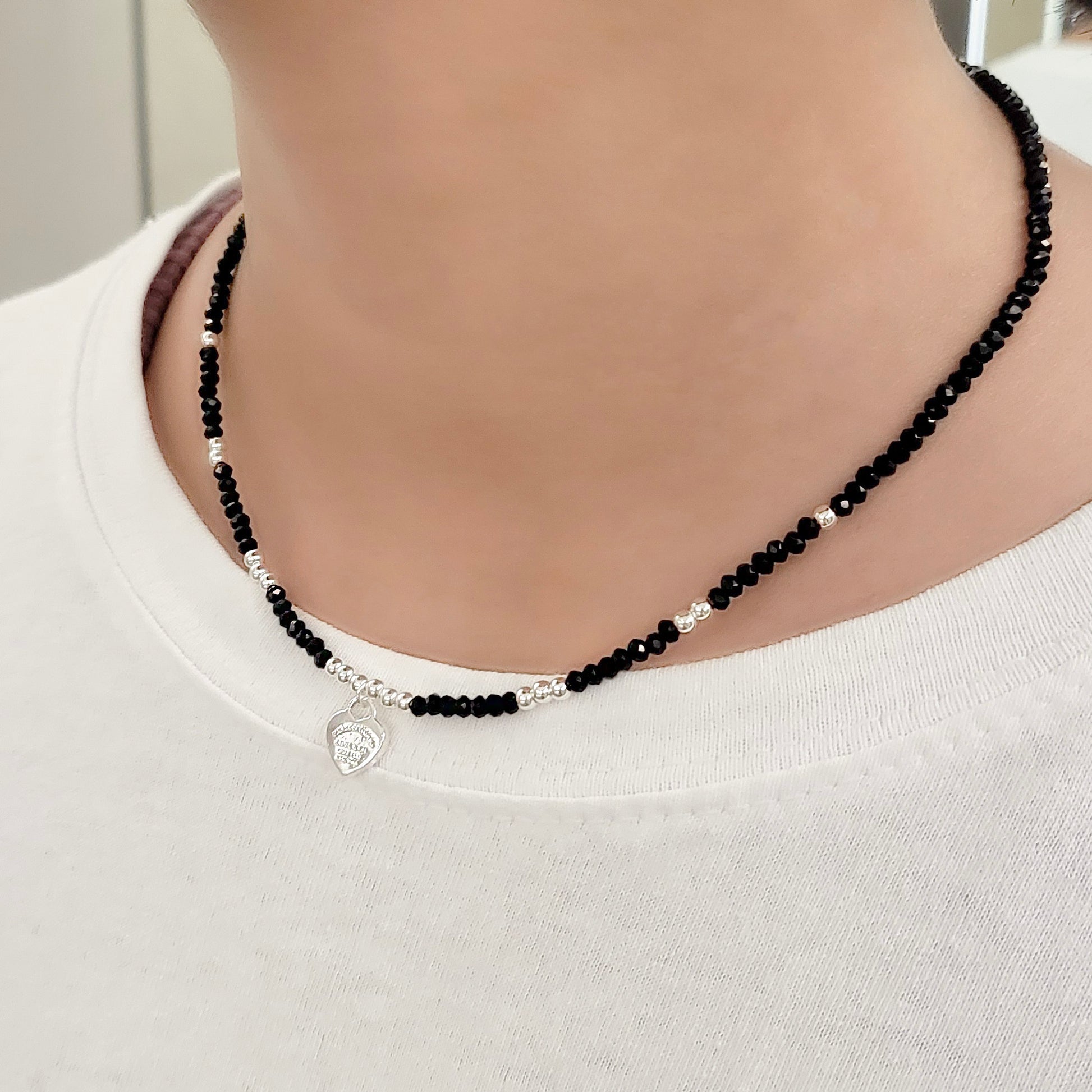 Black Crystal Beaded Necklace